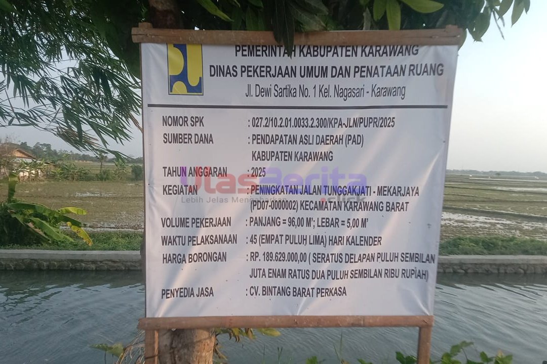 Proyek dengan volume 96 meter panjang dan lebar 5 meter itu berada di wilayah Tunggakjati–Mekarjaya, Kecamatan Karawang Barat. Dilaksanakan oleh CV. Bintang Barat Perkasa, proyek ini seharusnya diselesaikan dalam waktu 45 hari kalender. Namun hasil akhir pekerjaan justru menampilkan fakta mencengangkan: permukaan beton retak besar membelah badan jalan.