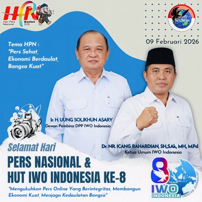 ULASBERITA.CLICK – Dalam momentum peringatan Hari Pers Nasional (HPN) 2026 sekaligus Hari Ulang Tahun (HUT) ke-8 Ikatan Wartawan Online (IWO) Indonesia, jajaran pimpinan IWO menegaskan komitmen memperkuat peran strategis pers dalam menjaga integritas, kedaulatan bangsa, serta mendorong pembangunan ekonomi nasional.