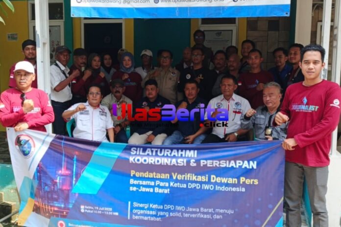 KARAWANG | ULASBERITA.CLICK | Ikatan Wartawan Online (IWO) Indonesia menggelar kegiatan silaturahmi, koordinasi, dan persiapan pendataan verifikasi Dewan Pers yang melibatkan para Ketua DPD IWO se-Jawa Barat. Kegiatan ini berlangsung di Sekretariat IWO DPD Karawang pada Sabtu (19/7), dan dihadiri puluhan perwakilan dari berbagai kabupaten/kota di Jawa Barat.