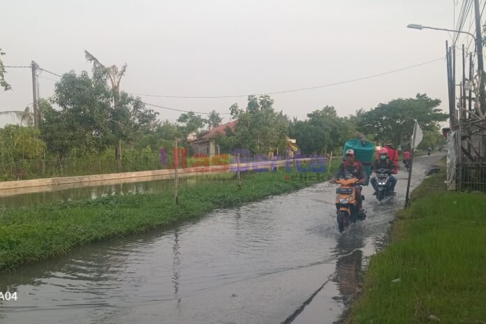 Dedi, salah satu pengendara dan warga setempat, mengaku kesal karena persoalan ini terus berulang tanpa penanganan berarti. “Akibat limpasan air saluran irigasi, jalan jadi banjir. Kalau hujan turun makin parah. Motor sering selip, antrean panjang juga sering terjadi. Kami berharap ada perhatian cepat dari pemerintah,” keluhnya.