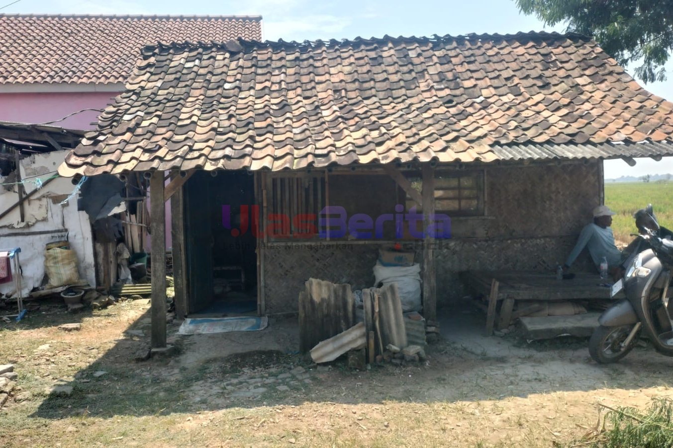 Rumah itu berdinding anyaman bambu, atap gentengnya bolong-bolong, dan tiangnya mulai lapuk dimakan usia. Ketika hujan, air merembes masuk. Saat angin kencang berhembus, suara genteng yang bergeser membuat hati was-was.