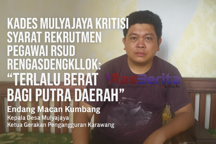 Karawang – Rekrutmen pegawai Rumah Sakit Umum Daerah (RSUD) Rengasdengklok, Kabupaten Karawang, menuai sorotan. Kepala Desa Mulyajaya, Kecamatan Kutawaluya, Endang Macan Kumbang, yang juga Ketua Gerakan Pengangguran Karawang, menyampaikan kritik terhadap sejumlah persyaratan yang dianggap terlalu memberatkan bagi putra daerah.