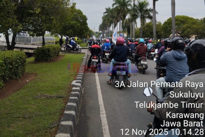 KARAWANG — Karawang mendadak gelap, bukan karena listrik padam, tapi oleh lautan manusia yang menuntut keadilan. Ribuan buruh yang tergabung dalam Koalisi Buruh Pangkal Perjuangan (KBPP) memadati ruas-ruas jalan utama, Rabu (12/11/2025), dalam aksi besar bertajuk “Karawang Poek”, simbol perlawanan terhadap kebijakan pemerintah yang dinilai semakin menindas pekerja.