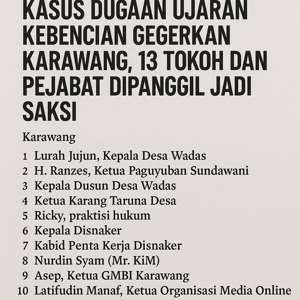 Caption: Kasus Dugaan Ujaran Kebencian Gegerkan Karawang, 13 Tokoh dan Pejabat Dipanggil Jadi Saksi