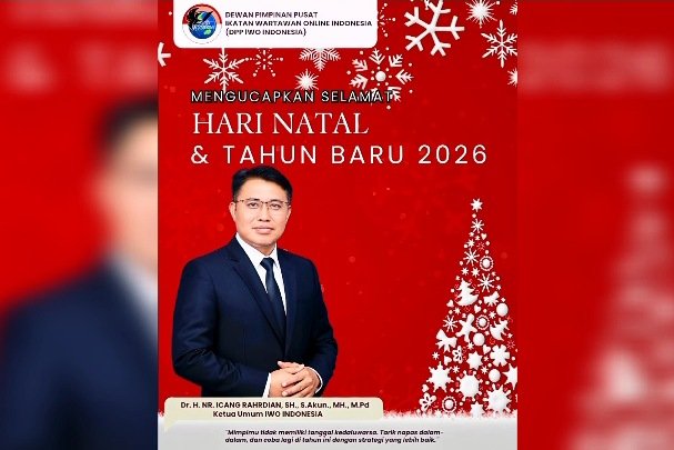 Jakarta – Ketua Umum Ikatan Wartawan Online (IWO) Indonesia, Dr. NR. Icang Rahardian, SH., MH., M.Pd, secara resmi menyampaikan ucapan Selamat Natal 2025 kepada umat Kristiani serta Selamat Tahun Baru 2026 bagi seluruh rakyat Indonesia. Momentum pergantian tahun ini dimanfaatkannya untuk menyampaikan refleksi mendalam mengenai peran pers di tengah arus transformasi informasi yang semakin cepat.