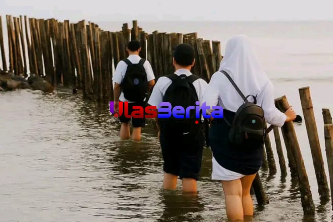 KARAWANG | ULASBERITA.CLICK | Di tengah sorotan megahnya pembangunan kota dan deretan aturan baru pendidikan dari Gubernur Jawa Barat, Dedi Mulyadi, ada kisah yang nyaris tak terdengar dari utara Karawang. Kisah tentang anak-anak yang lebih dulu basah oleh air laut sebelum duduk di bangku kelas.
