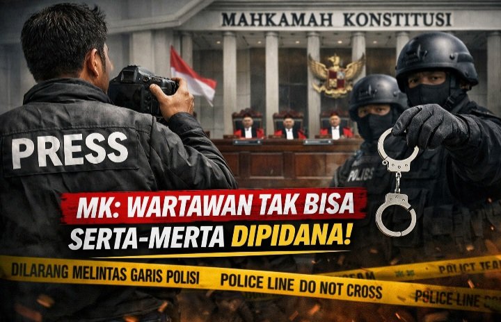 Jakarta — Praktik kriminalisasi terhadap wartawan akhirnya dipagari Mahkamah Konstitusi (MK). Dalam putusan yang berpotensi mengguncang pola penanganan sengketa pers, MK menegaskan wartawan tidak dapat langsung diseret ke ranah pidana hanya karena karya jurnalistik yang dipublikasikannya.