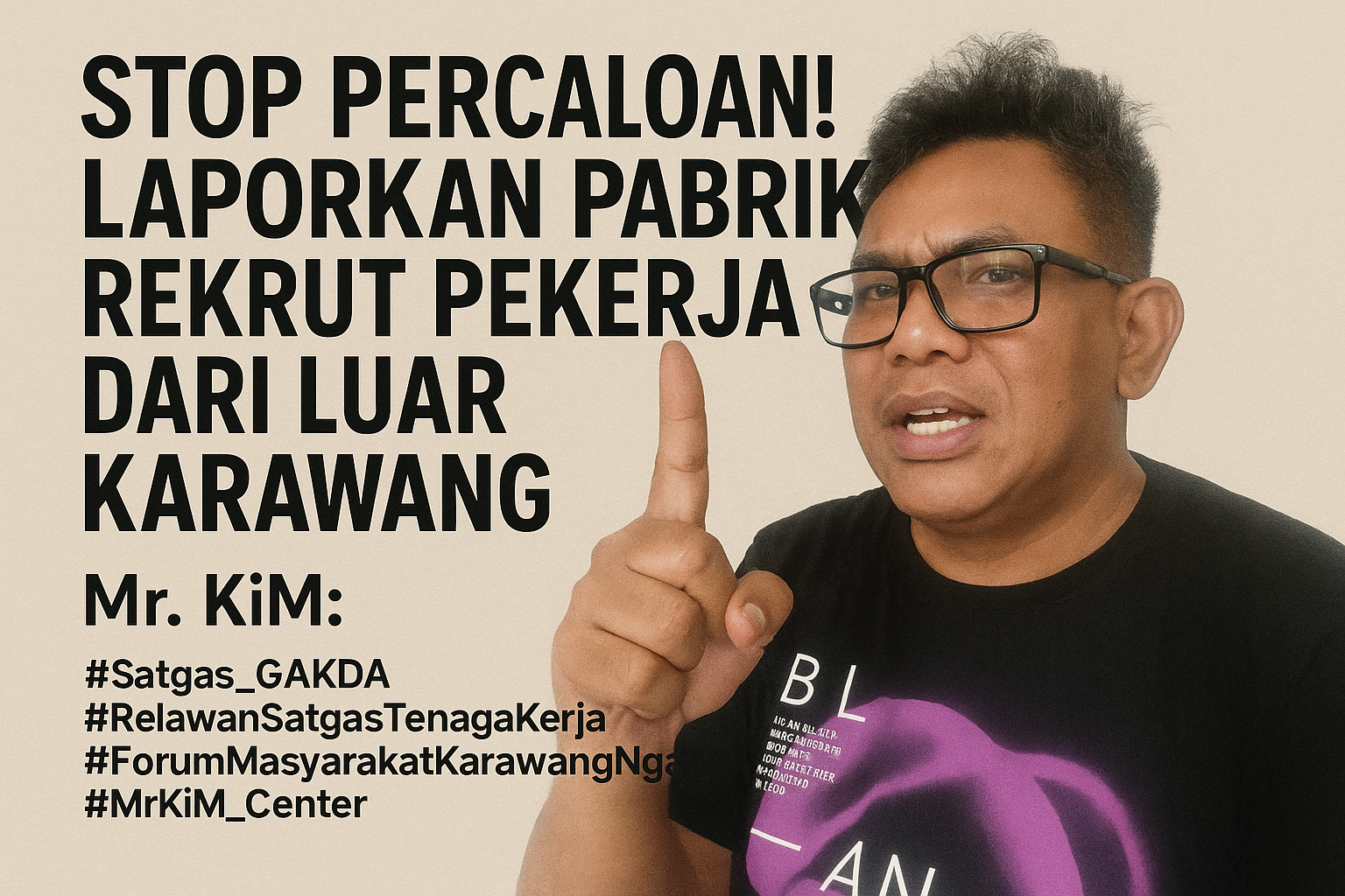 Karawang — Aktivis sosial Karawang, Mr. KiM, angkat bicara soal banjir pesan pribadi dari warga yang meminta bantuan masuk kerja di pabrik. Ia menegaskan, dirinya tidak punya wewenang merekomendasikan siapa pun agar diterima bekerja.
