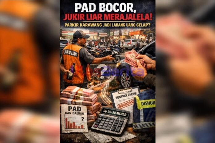 Padahal, titik parkir tersebar luas di hampir seluruh wilayah Karawang, mulai dari Jalan Tuparev, Kertabumi, Niaga, Galuh Mas, hingga pusat-pusat keramaian di berbagai kecamatan. Ketimpangan ini menguatkan dugaan kebocoran PAD akibat lemahnya pengawasan dan tata kelola perparkiran.