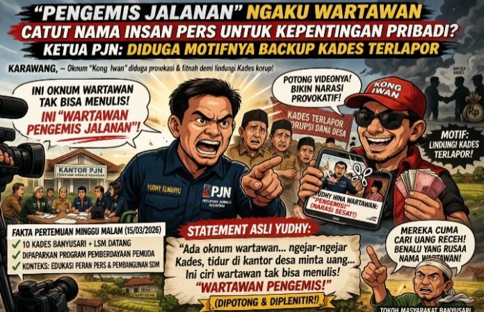KARAWANG – Upaya sistematis untuk mengkriminalisasi dan merusak citra Persatuan Jurnalis Nusantara (PJN) mulai terkuak. Narasi provokatif yang dilontarkan oleh seorang oknum bernama Gunawan alias Kong Iwan terkait istilah “Wartawan Pengemis” diduga kuat merupakan pesanan untuk mem-backup kepentingan sejumlah Kepala Desa (Kades) di Banyusari yang tengah terlilit kasus hukum.
