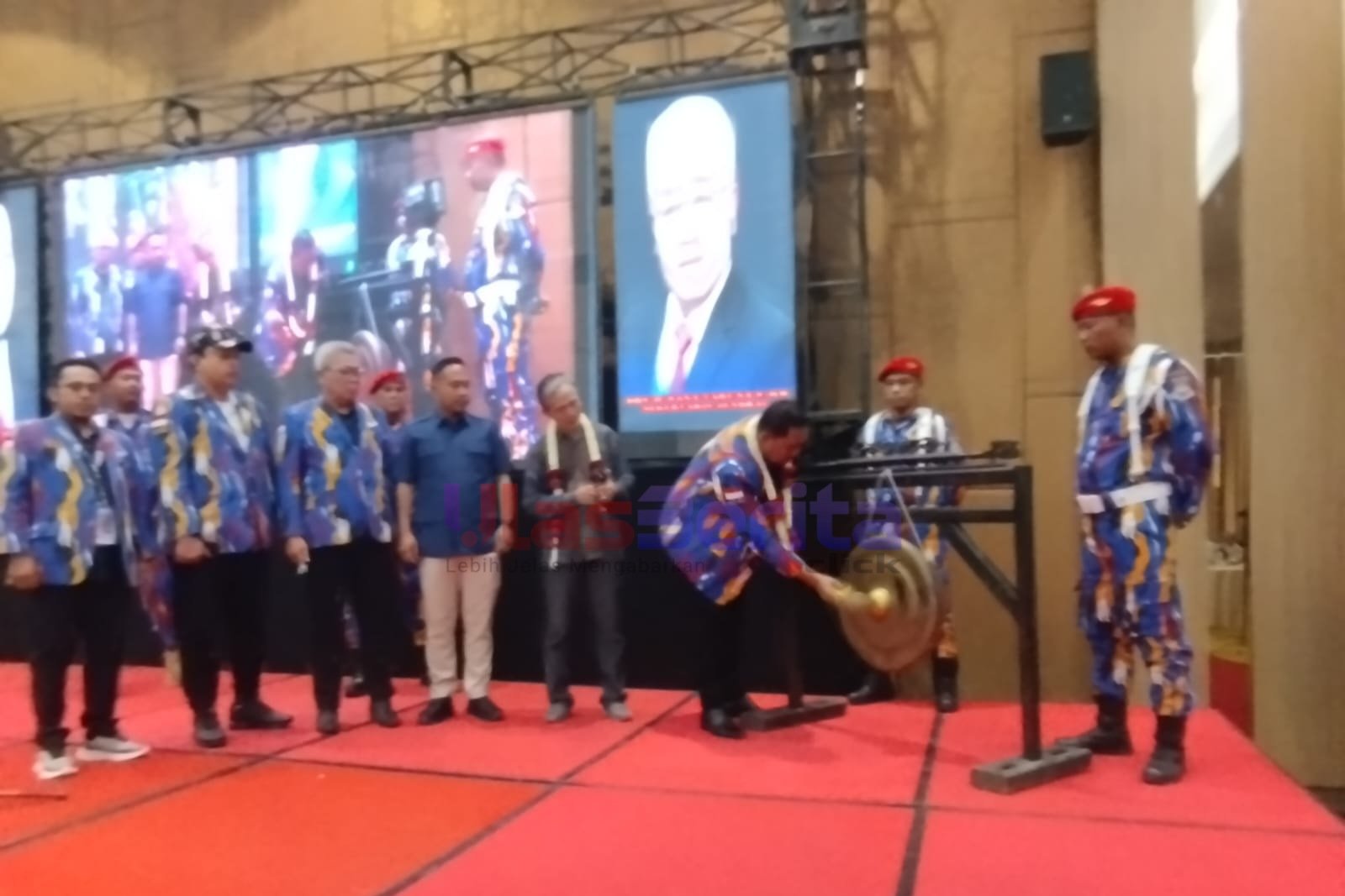 Sebagai simbol dimulainya Rakernas, Ketua Umum DPP LSM Laskar NKRI, H. ME. Suparno, membuka acara dengan pukulan gong, didampingi Sekretaris Jenderal Drs. H. Nana Taruna S., MM, jajaran pengurus, serta tamu kehormatan.