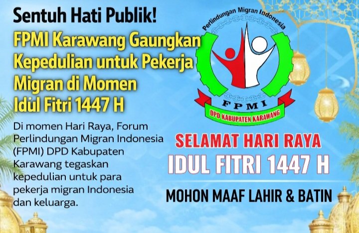 Karawang – Di tengah suasana hangat Hari Raya Idul Fitri 1447 Hijriah, Forum Perlindungan Migran Indonesia (FPMI) DPD Kabupaten Karawang hadir membawa pesan yang menyentuh hati. Tak sekedar ucapan hari raya, FPMI menegaskan kepedulian mendalam terhadap para pekerja migran Indonesia (PMI) yang berjuang jauh dari tanah air.