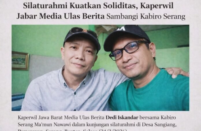 Serang – Upaya memperkuat jaringan dan soliditas antar awak media terus digencarkan. Kaperwil Jawa Barat Media Ulas Berita, Dedi Iskandar yang akrab disapa Dedi MK, melakukan kunjungan silaturahmi ke kediaman Kabiro Serang Media Ulas Berita, Ma’mun Sanjaya, di Desa Sangiang, Kecamatan Pamarayan, Kabupaten Serang, Banten, Selasa (24/3/2026).