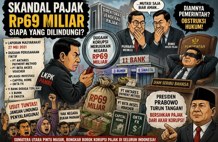 ULASBERITA.CLICK – Dunia perpajakan kembali diguncang. Kali ini bukan sekedar isu administratif, melainkan dugaan skandal besar bernilai Rp69 miliar yang disebut terjadi di wilayah Sumatera Utara. Laporan ini disuarakan oleh Bejo Suhendro dari Lembaga Koordinasi Pemberantasan Korupsi dan Penyelamat Aset Negara Republik Indonesia (LKPK-PANRI).