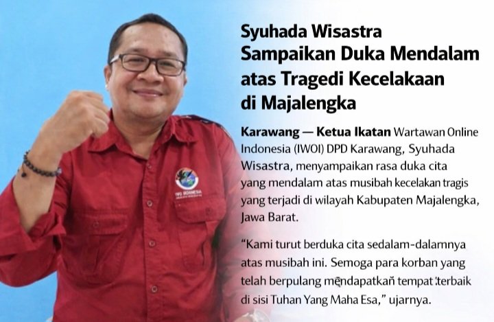 Karawang — Ketua Ikatan Wartawan Online Indonesia (IWOI) DPD Karawang, Syuhada Wisastra, menyampaikan rasa duka cita yang mendalam atas musibah kecelakaan tragis yang terjadi di wilayah Kabupaten Majalengka, Jawa Barat.
