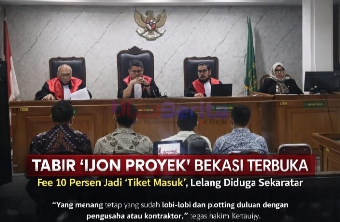 Sorotan tajam publik mengarah pada pola permainan proyek yang diduga telah “dikunci” sejak awal. Dalam ruang sidang, enam saksi dari internal Pemkab Bekasi membeberkan adanya aliran fee sebesar 10 persen dari setiap kegiatan proyek, angka yang disebut-sebut menjadi “syarat wajib” bagi pihak tertentu untuk memenangkan pekerjaan.