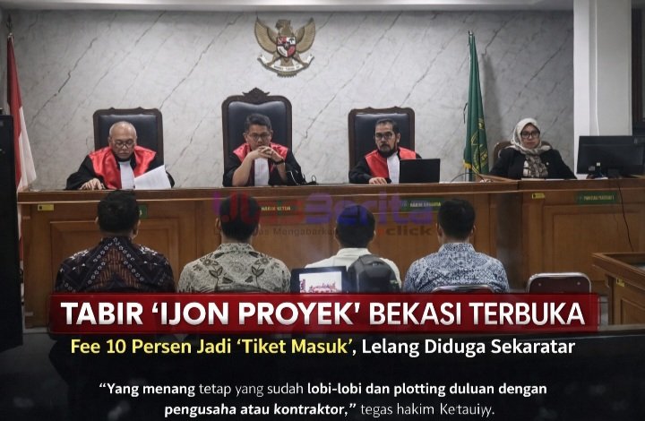 Bekasi — Tabir gelap birokrasi di lingkungan Pemerintah Kabupaten Bekasi kian tersibak. Dalam persidangan lanjutan perkara dugaan korupsi skema “ijon proyek”, terungkap fakta mencengangkan: praktik korupsi berjamaah yang disebut berlangsung sistematis, terstruktur, dan melibatkan sejumlah pejabat dari dinas strategis.