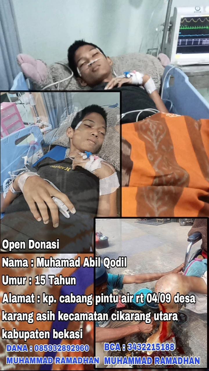 Abil awalnya mengalami kecelakaan kecil—terjatuh dari pohon sekitar lima bulan lalu. Namun siapa sangka, rasa nyeri di dengkul kaki kanannya yang tak kunjung reda itu ternyata merupakan gejala awal kanker tulang. Sayangnya, keterbatasan biaya membuat Abil tidak mendapatkan pengobatan yang memadai sejak awal. Kini, kondisinya semakin memburuk dan ia harus dirawat di RSUD Cibitung dalam keadaan yang sangat memprihatinkan.