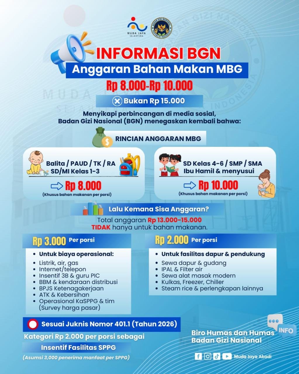 Faizal juga meluruskan informasi terkait adanya angka Rp8.000 dalam RAB. Ia menjelaskan bahwa nominal tersebut berlaku untuk porsi kecil.