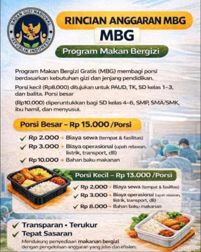 Ia menekankan bahwa transparansi anggaran penting agar publik memahami bahwa program MBG tidak semata soal angka per porsi, melainkan sebuah sistem besar yang melibatkan operasional, perlindungan tenaga kerja, serta standar fasilitas dapur.