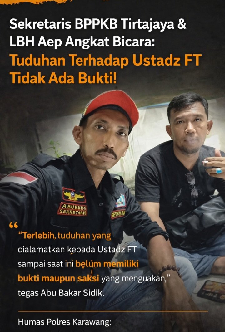 Pernyataan tersebut diperkuat dengan keterangan dari Humas Polres Karawang yang menyebut bahwa hingga saat ini belum ada bukti dan saksi yang secara jelas membenarkan tuduhan terhadap Ustadz FT.