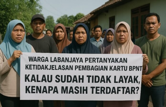 Karawang – Sejumlah warga Desa Labanjaya, Kecamatan Pedes, Kabupaten Karawang, menyampaikan kegelisahan terkait tidak jelasnya pendataan dan pembagian kartu Bantuan Pangan Non Tunai (BPNT). Mereka mempertanyakan kenapa masih ada nama penerima yang dinilai sudah tidak layak atau bahkan tidak lagi tinggal di desa, tetapi tetap tercantum dan masih memegang kartu bantuan.
